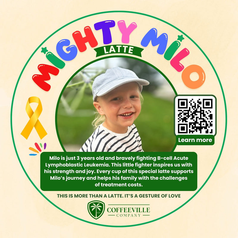 Support this brave young fighter by enjoying a bag of your favorite Coffeeville blend, now shipping free to your home. Every order helps share Milo’s story and bring warmth where it matters most.