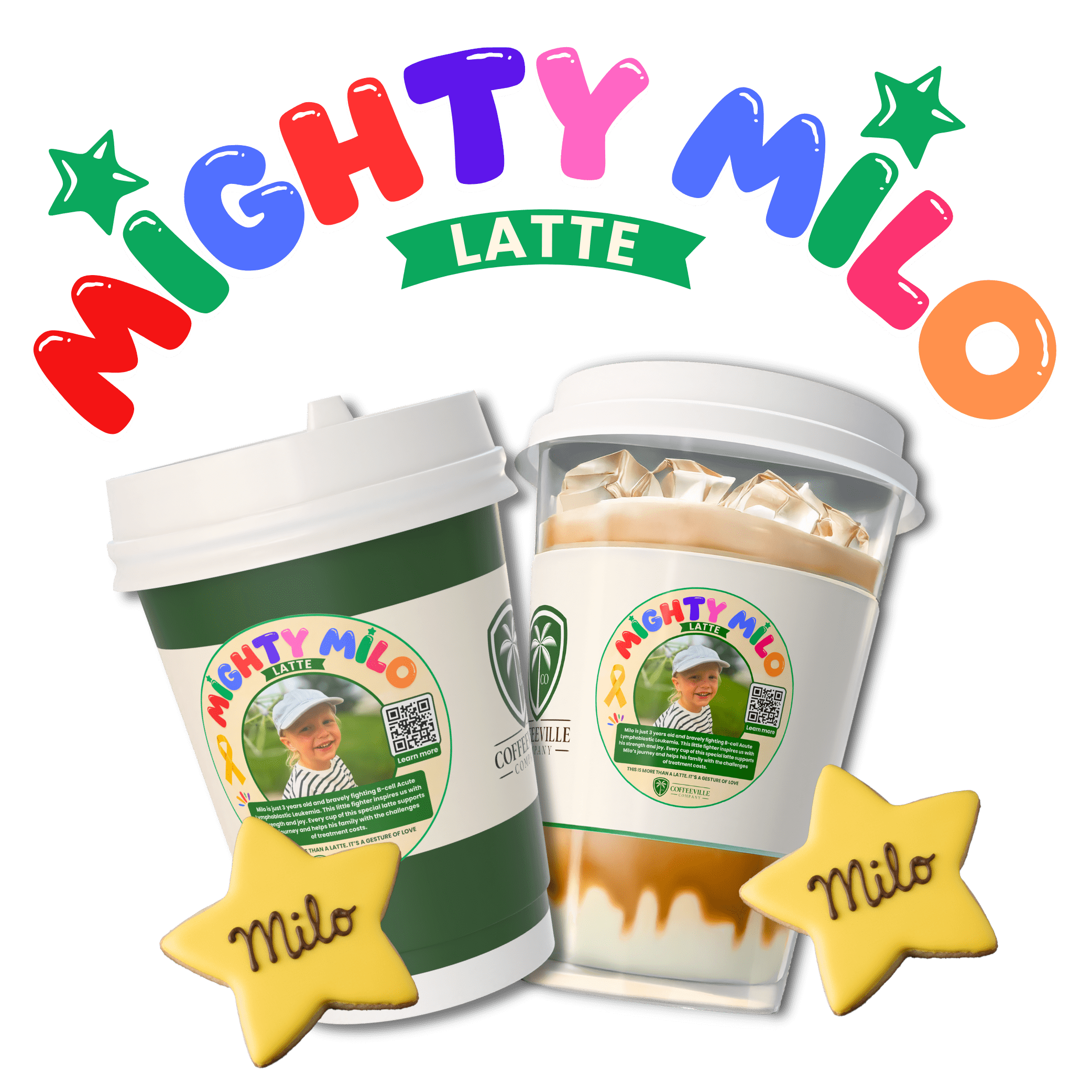 The best from our community shines through with Edible Art by Lisa, who joined us in this cause to create the perfect cookie for Milo’s drink. Each Mighty Milo Latte, hot or iced, comes with a special Milo’s Star Cookie, a sweet symbol of hope, strength, and community love.