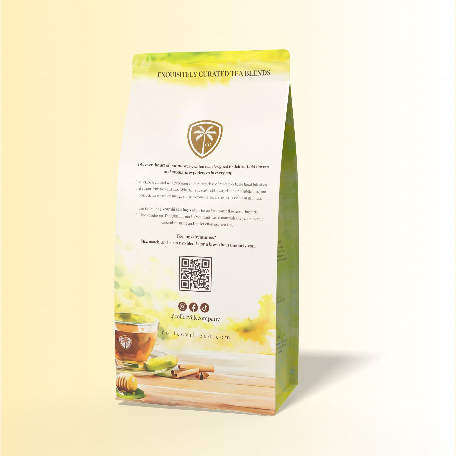 Drift away with creamy rooibos, velvety toffee, and the soothing warmth of Chamomile. Made for relaxation and dreaming beyond time zones
